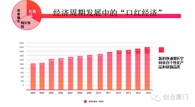 在这个过程中有一个特别好玩的事叫“口红经济”。每当在经济不景气时,口红的销量反而会直线上升。口红作为一种“廉价的非必要之物”,可以对消费者起到一种“安慰”的作用。