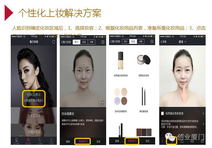 我们开玩笑的把它叫化妆师附体功能。我们就做了一个智能化的事情,让我们的产品学所有化妆师的经验,让这个经验直接推送给用户,而不是拎着个箱子上门。