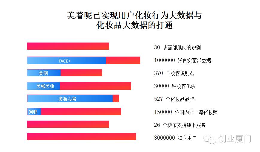 第二个,“美着呢”已实现用户化妆行为大数据与化妆品大数据的打通。我们有100万张真实面部数据,370个化妆识别点,3万种化妆技巧和527个化妆品牌。只有知道数据,你有哪些化妆品,推送的妆容才对你有效。不然只是随便买买买,浪费钱又不适合自己。