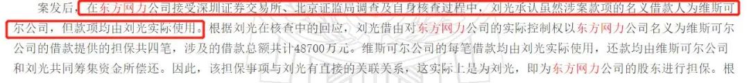 上述违规担保时间发生在2017年4月至2019年3月,主要是东方网力及刘光作为公司实控人期间,对北京维斯可尔科技发展有限责任公司(下称“维斯可尔”)等5家公司借款提供的担保,对北京市警视达机电设备研究所有限公司等4家公司的应收账款保理融资提供担保。其中,对维斯可尔借款提供的担保,根据东方网力被深交所等调查,款项均由刘光实际使用。