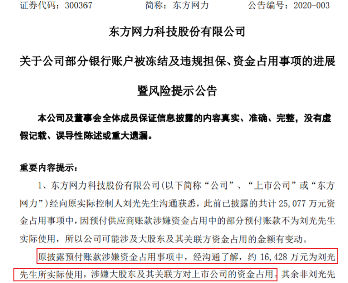 公司还在2020年1月2日披露,查出2.5亿元的资金被占用,其中有1.6亿为刘光所用。