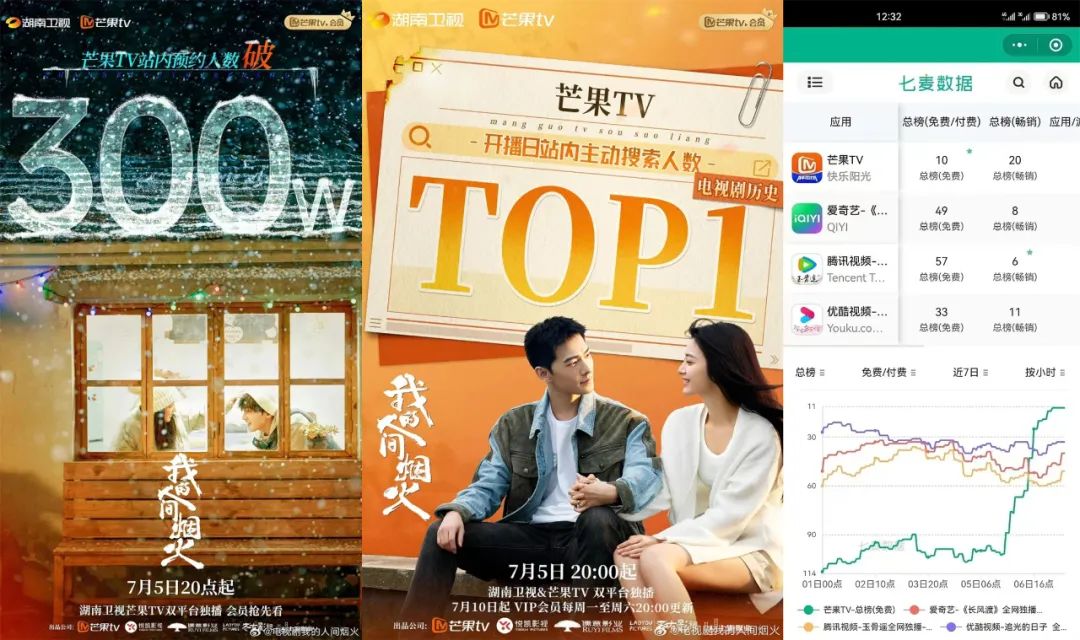 其实就算没有魏大勋,《我的人间烟火》的播出情况也已经完全达到预期。事实证明,芒果TV头部剧集依然有市场的号召力,在站内,该剧预约人数提前破了300万,开播日站内主动搜索人数创电视剧历史第一,破了芒果TV一系列纪录。