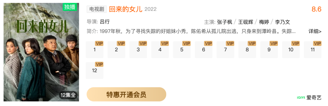 在这方面爱奇艺做得更加激进,今年以来首先是爱奇艺,《狂飙》从第三集开始就仅限会员观看,“迷雾剧场”的《回来的女儿》《平原上的摩西》更是直接“断供”放弃对非会员开放;《回响》则是会员收官一周后才开始非会员更新。