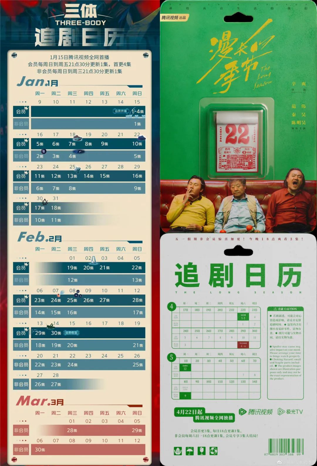 腾讯视频的《三体》在2月14日迎来会员收官,而非会员用户要看大结局要一直等到3月6日;到了《漫长的季节》,虽然五一假期曾有过非会员加更3集的福利,但追剧日历上,非会员更新根本没有最后三集。