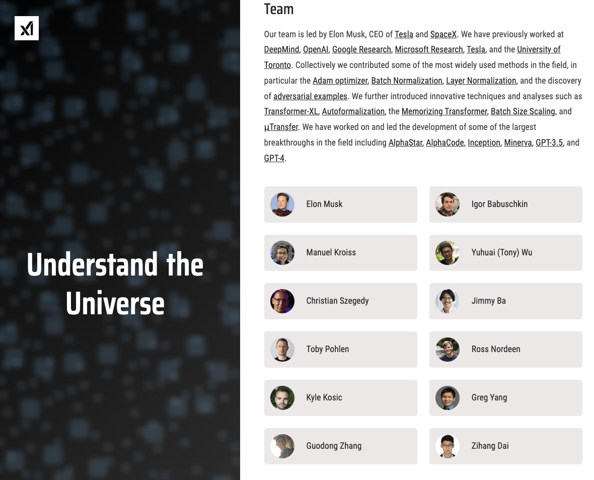 xAI定于周五在线上举办活动,这一由马斯克领导的团队将在线回答提问。根据xAI官网,团队成员曾在DeepMind、OpenAI、谷歌研究院、微软研究院、特斯拉及多伦多大学供职,由现任人工智能安全中心主任Dan Hendrycks担任顾问。该公司正在湾区招募技术人员。
