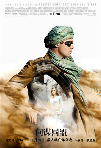 爱情谍战影片《间谍同盟》将于11月30日登陆全国各大院线,日前该片发布一支终极预告片,汇集了战地爱情、间谍疑云等多种谍战元素。该影片讲述了由皮特饰演的盟军反情报特工马克斯·瓦坦与法国维希政府卧底玛丽安(玛丽昂·歌迪亚 饰)的间谍往事。两人之间的关系因战争假戏真做,在金盆洗手以后,两人在伦敦开始了清净的生活,然而马克斯却慢慢发现妻子是纳粹间谍,由此展开了一段相爱相杀的爱情故事。