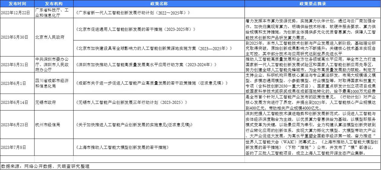 自人工智能技术被列入国家规划起,人工智能成为未来科技创新发展的必争之地。目前,在这个新赛道,多个城市已跑出加速度。在自2022年底以来,全国已有多个省份、地区集中发布了与人工智能发展相关的政策措施,从“顶层设计”阶段,打破壁垒,推动原始创新,促进数据流通,让更多数据被有效运用起来,进而推动产业的健康发展。