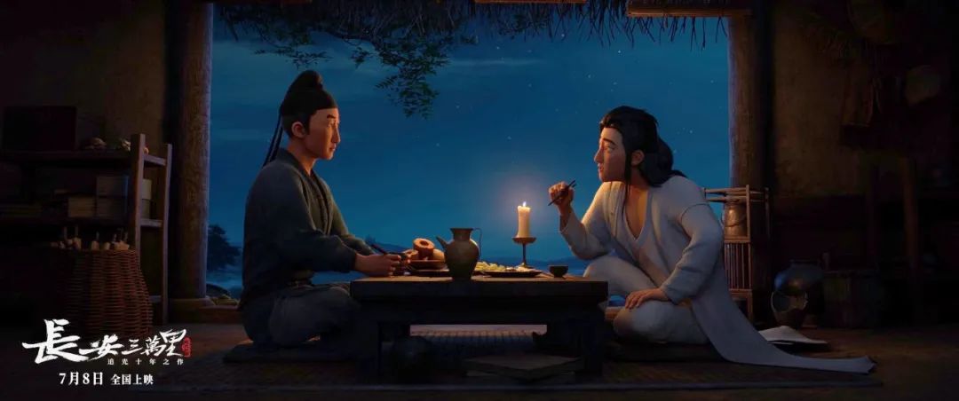 放弃过去那些相对成功作品里的流行要素,并不等于不在新作品里堆叠要素。《长安三万里》始终是一部商业作品,追光在其他作品里因为要素堆叠而吃到的红利,在新作上应该是更积极地运用,这是追光动画能够在产量上保证一年一部电影、在内容上保证电影票房不至于太差的重要原因。这一次,《长安三万里》中的流行要素,则是国人耳熟能详的唐朝诗人和唐诗,这原本是一体的二者,被堆积在一起奉献给观众,最终取得了1+1>2的效果。高适和李白截然不同的人生打动了一部观众,密集登场的唐诗甚至成为了不少中国家长一种新的“鸡娃”渠道。《长安三万里》获得的口碑和票房已经比《白蛇》系列、《新神榜》系列都更出色了。
