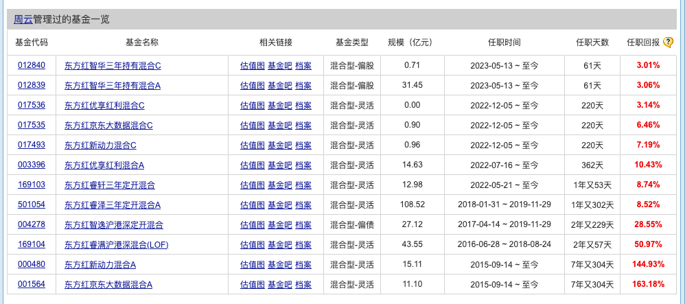 但是从管理规模和单只基金的回报率角度来看,周云距离成为一线基金经理,像陈光明、林鹏一样扛起东证资管的大旗,还有很长的一段距离。
