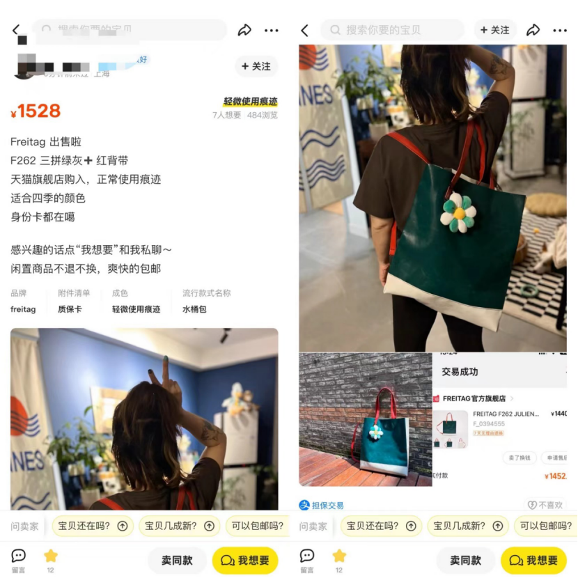 更重要的是,当FREITAG变成自带社交属性的潮流货币之后,借助闲鱼、小红书等平台,反而实现了一种另一种意义上的二手循环和流通,这何尝不是另一种可持续和共享呢。