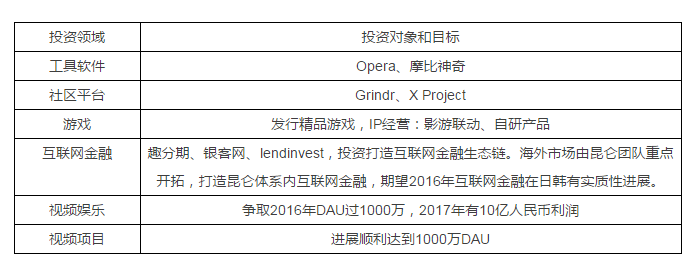 梳理一下昆仑万维的投资领域,主要集中在五个方面: