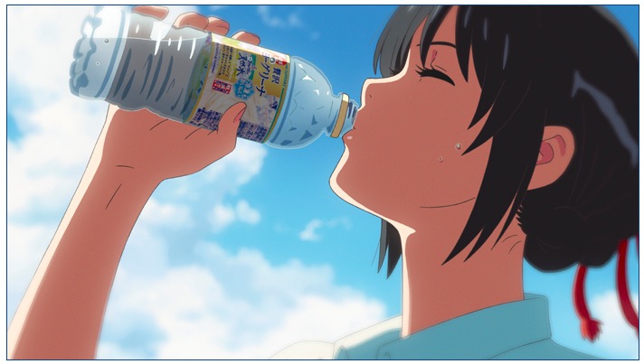 今年8月在日本初上映时,电影就和日本三得利旗下的一款天然纯净水合作,分别以男主角泷、女主角三叶和两人相遇后的不同视角拍摄了三支电视广告。广告主题则是“这个夏天,我们一定会相遇”:乍一看是男女主角在电影中的相遇,其实三得利想表达,这款主打夏季清凉感的天然水也是一定会和你相遇的。