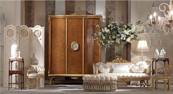高端的皮草、繁复的雕花、闪亮的金箔、精湛的各种拼缀工艺,意大利家具的奢侈感就通过这些细节呈现