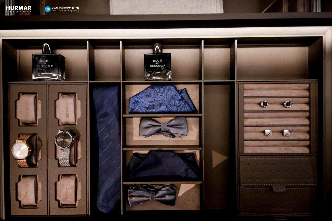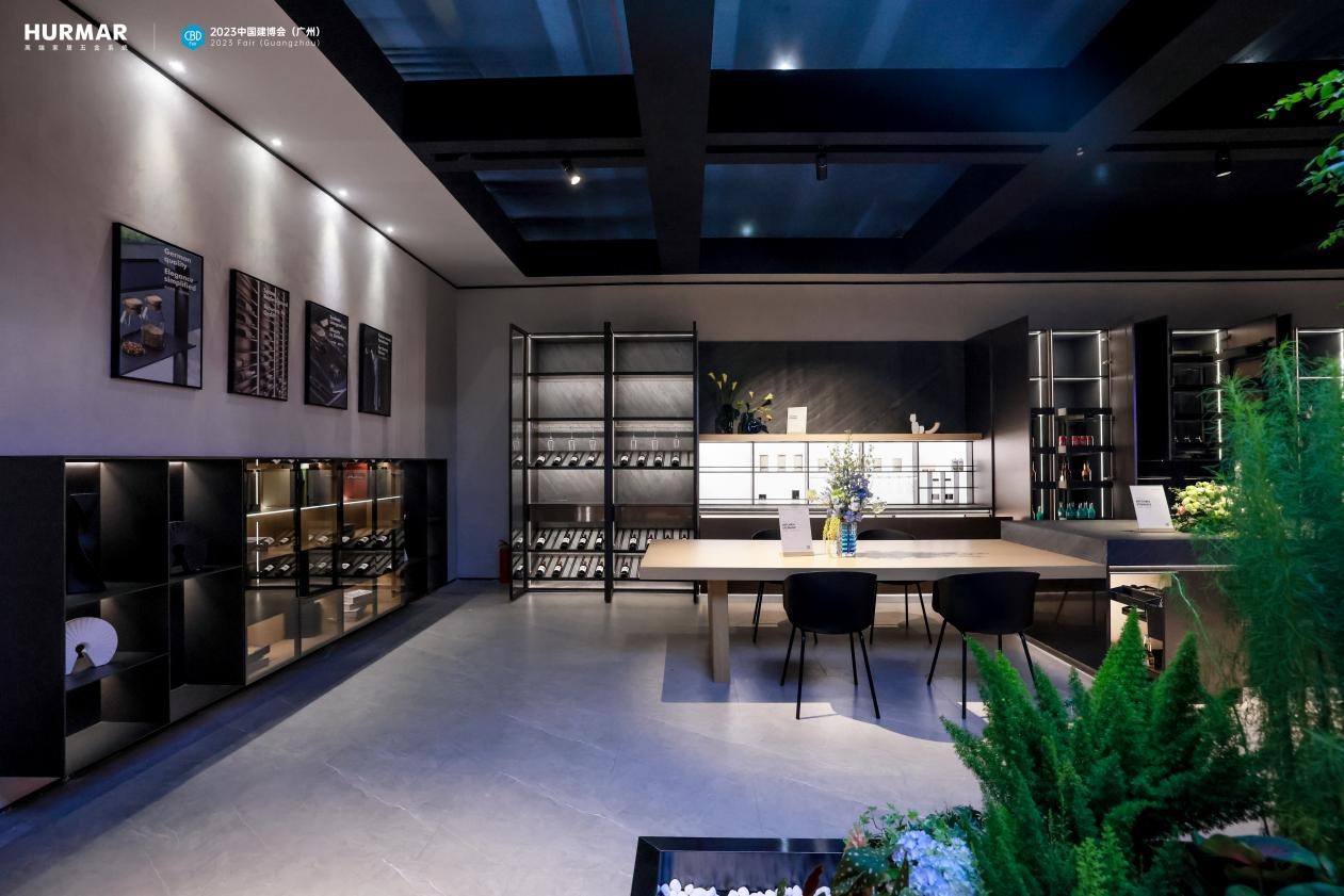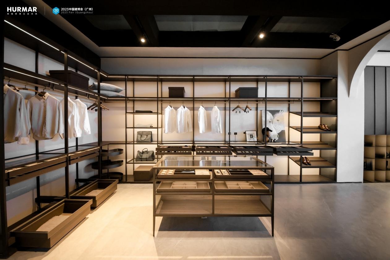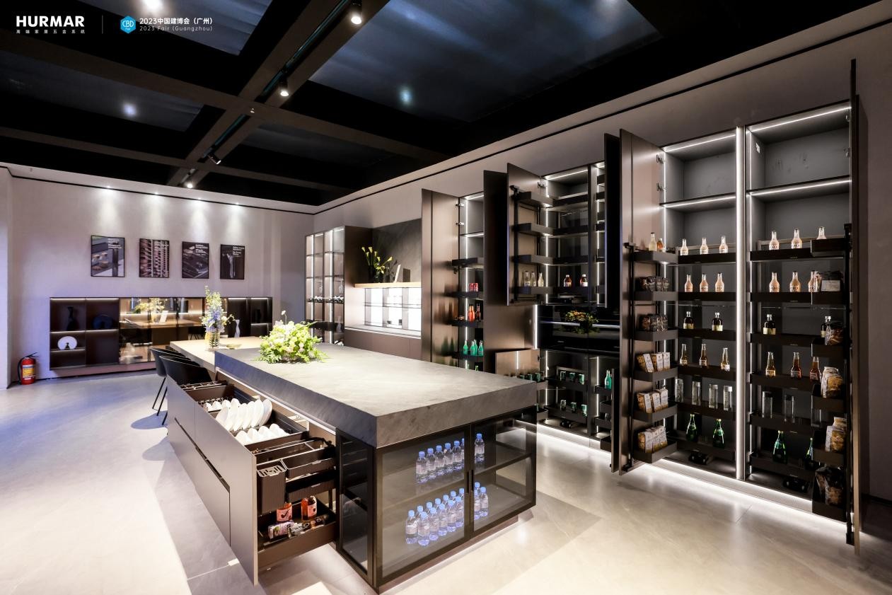 本次展馆中HURMAR首秀厨房收纳、衣帽间收纳、高定铝材应用三大系统建构的高端全案空间五金解决方案。