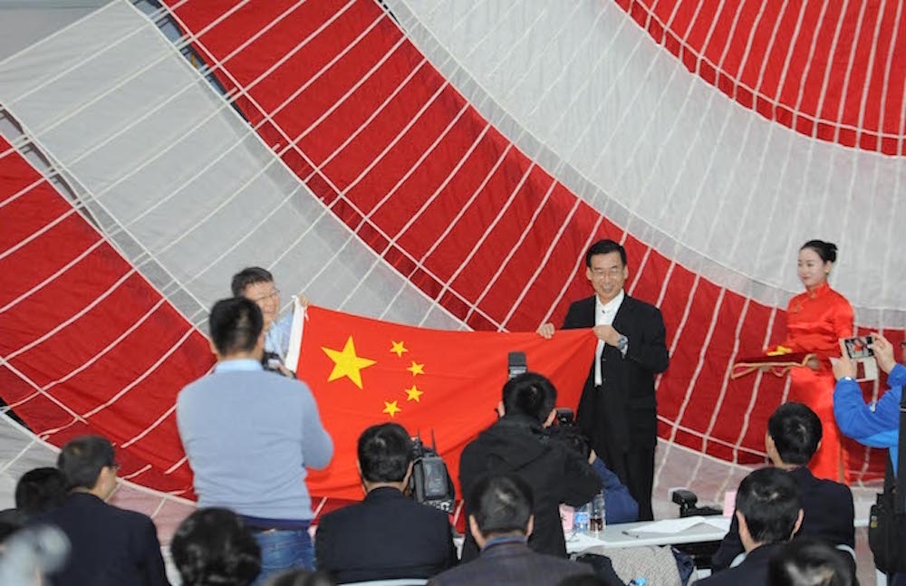 红白相间的巨型降落伞前,神舟十一号飞船返回舱“端坐”在宽敞的展厅里,层层相机的闪光灯围绕着它不停闪烁。