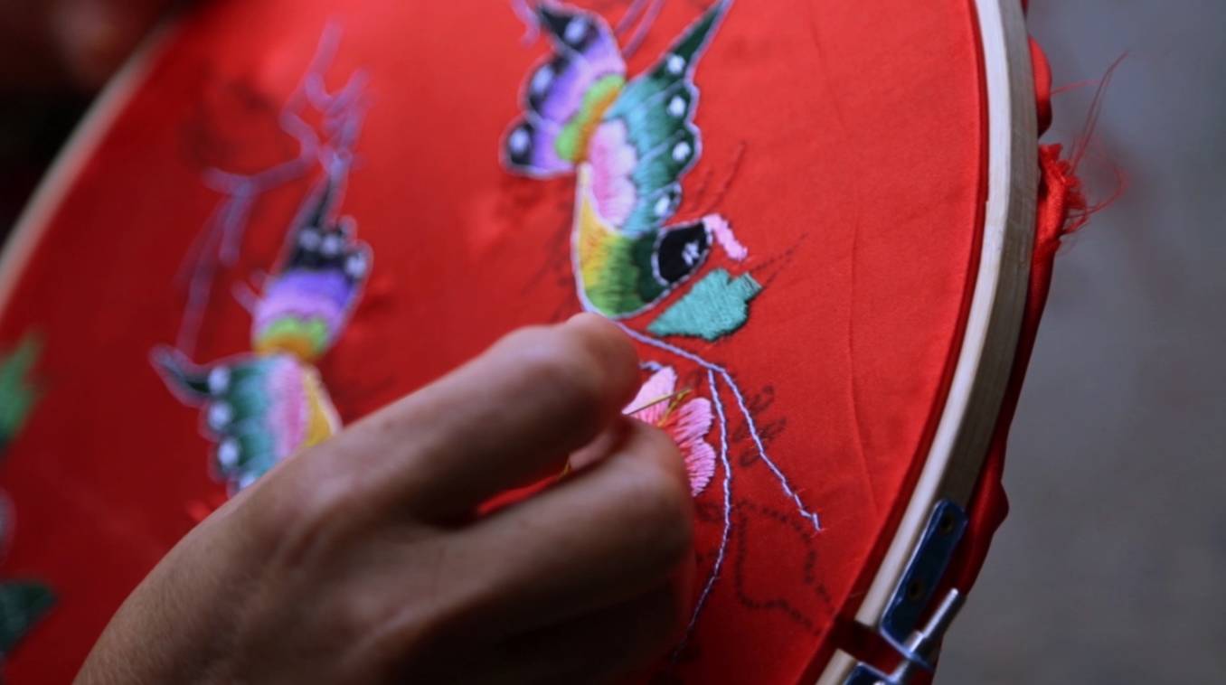 在隔壁村,长大的孩子去了远方,而守在家中的母亲依旧在为他们绣着枕套花。也许在遥远的地方,即便是枕在家乡上,那种漂泊在外的孤独感也会消散一些。而这种含蓄的表达,既化解了万里之外的乡愁,也拉近了两代人连在一起的心。
