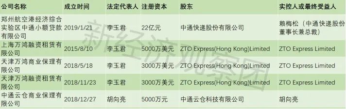 工商资料显示,中通小贷法定代表人为李玉君,为中通快递股份有限公司全资子公司。中通小贷经营范围为“办理各项小额贷款;围绕中通快递供应链开展小额贷款业务;办理中小企业发展、管理、财务等咨询业务;经监管部门批准的其他业务。”