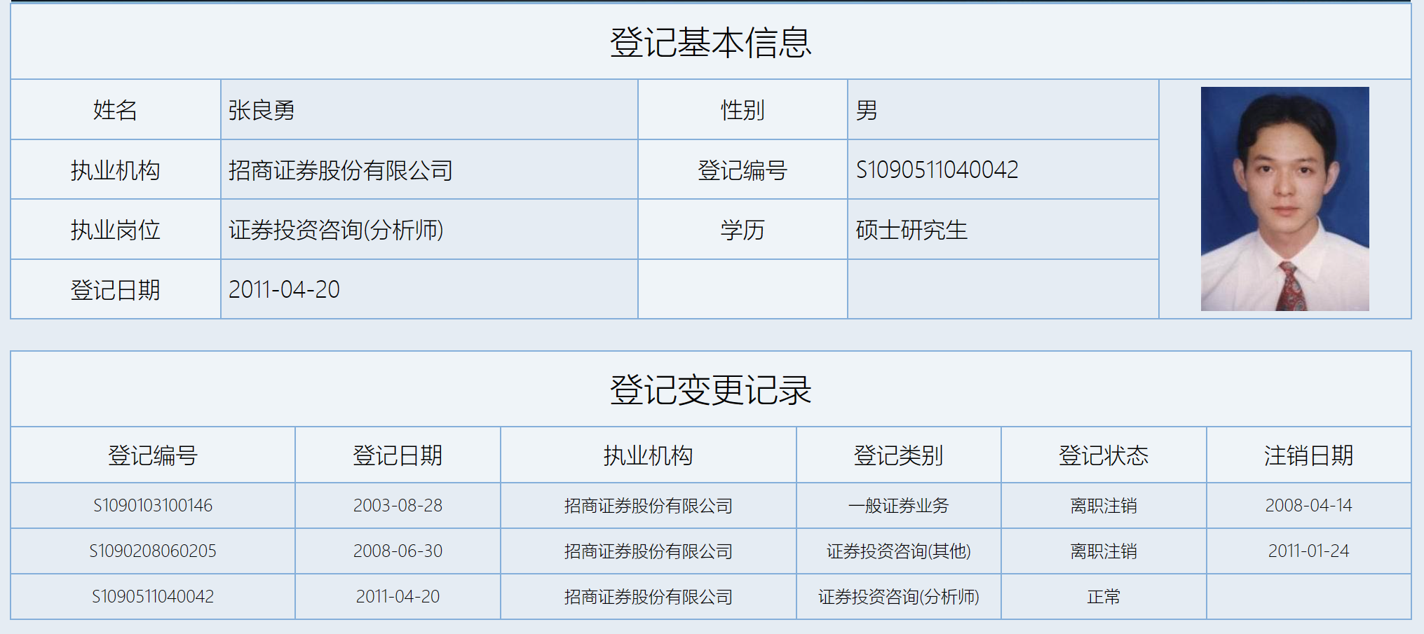 作为直接从研究所“空降”而来的新继任者,中国证券业协会显示,张良勇自2003年8月登记后,便一直供职于招商证券,截至目前已服务招商证券长达20年,这在以高流动性著称的券商卖方体系内极为罕见。