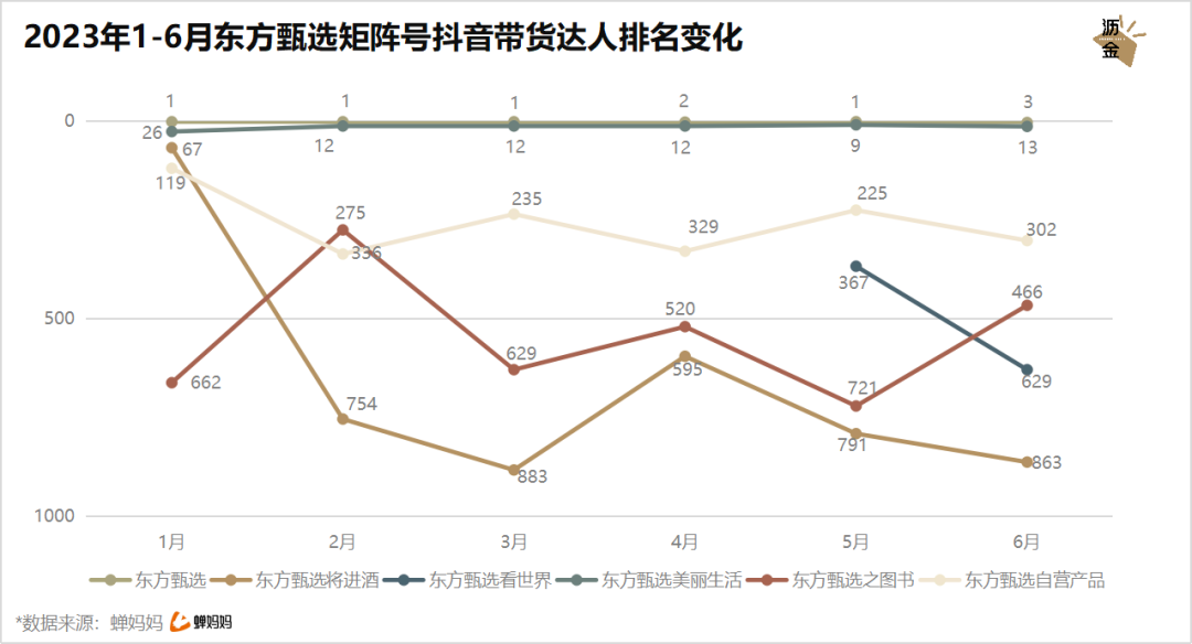2023H1东方甄选矩阵号抖音带货能力排名变化