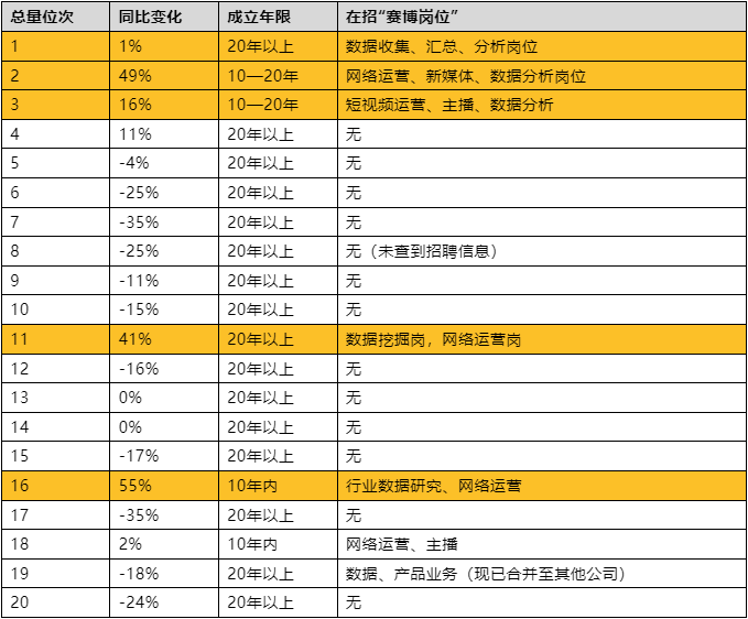 以前程无忧、BOSS直聘等招聘平台数据观察,处于第1名且保持增长的代理机构,及其他增长势头优异的企业几乎均设置了网络运营、数据信息挖掘等“赛博职位”。