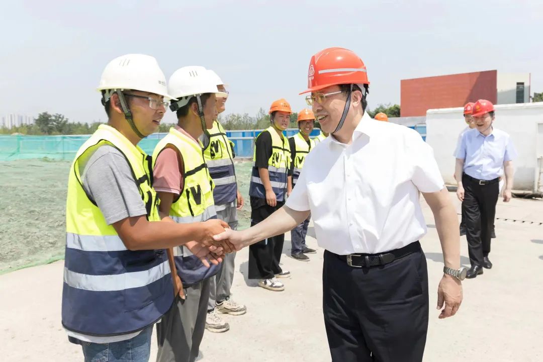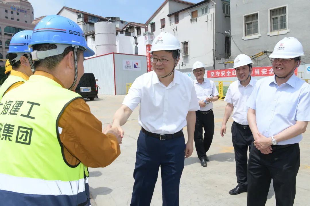位于黄浦区南京东路街道的中央商务区排水系统提标改造工程,将新建合流泵站、初期雨水调蓄池及排水总管,翻建部分排水支管,进一步提升所在地区排水标准,解决初期雨水污染问题。陈吉宁来到施工现场,听取工程整体建设进展和先进技术运用情况汇报,就工程服务防汛防台作了具体了解,要求建设单位坚持安全第一、质量为先,高标准建设、高水平运行,更好依托技术赋能,纳入“一网统管”平台,助力防汛防台工作,巩固提升城市水环境质量。陈吉宁走到一线建设者中间,了解大家的日常工作强度和防暑降温措施,“这些天的施工时间是怎么安排的”“高温天气露天作业的规定都掌握吗?”他要求工地负责人坚决压实安全生产责任,不折不扣执行好现场作业相关规定要求,保障一线工人安全、高效施工作业。