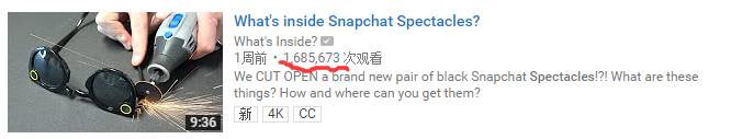 还有一伙人丧心病狂的对 Spectacles 进行了切割拆解,视频观看量达到了 168 W~
