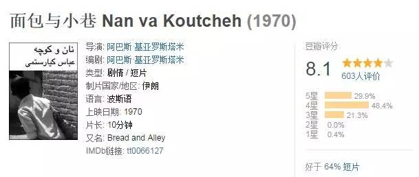 伊朗最著名的导演阿巴斯,也是一个儿童片爱好者,他的处女作《面包与小巷》,短短10分钟,描绘了一个可爱的童真世界。