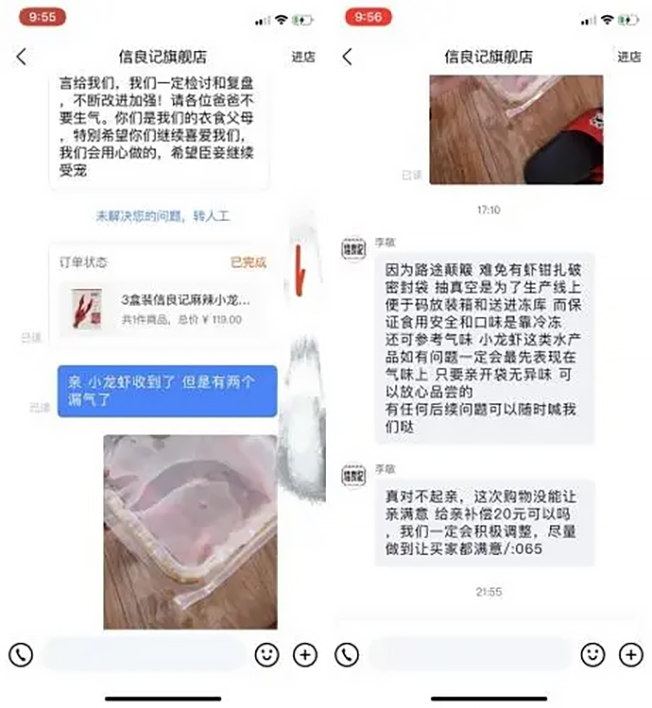 当时,罗永浩直播首秀大获成功,信良记也成功出圈。仅仅过去一周,收到货的网友却反映,小龙虾包装胀气,去年6月生产,售后无人理。