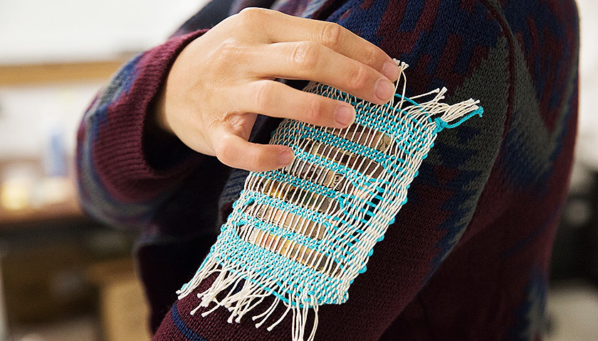 在这篇发表在Nature Communications的研究中,Thomas和他的同事通过纳米技术制造出了一个被称为“铜带”的带状材料,这种“铜带”薄而柔软,可以嵌入到衣物中,并且能够同时吸收和储存太阳能。每一块“铜带”由共享电极的一个太阳能电池板和一块能储存能量的超级电容器组成,用纱线可以将这些“铜带”编织在一起,从而实现可穿戴。