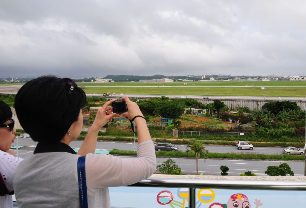 2010年5月18日,一名女子在日本冲绳县嘉手纳町远观美空军驻冲绳嘉手纳基地。新华社记者季春鹏摄