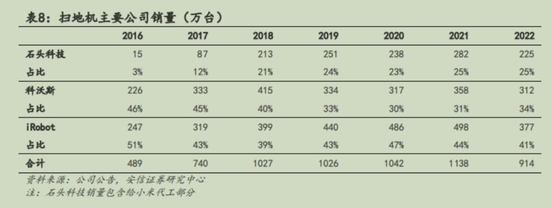 显然,通过iRobot、科沃斯和石头的数据显示,2022年全球扫地机器人市场的出货量是萎缩的;而在科沃斯的财报中显示,2022年全球扫地机器人市场规模为65亿美元(同比持平)。