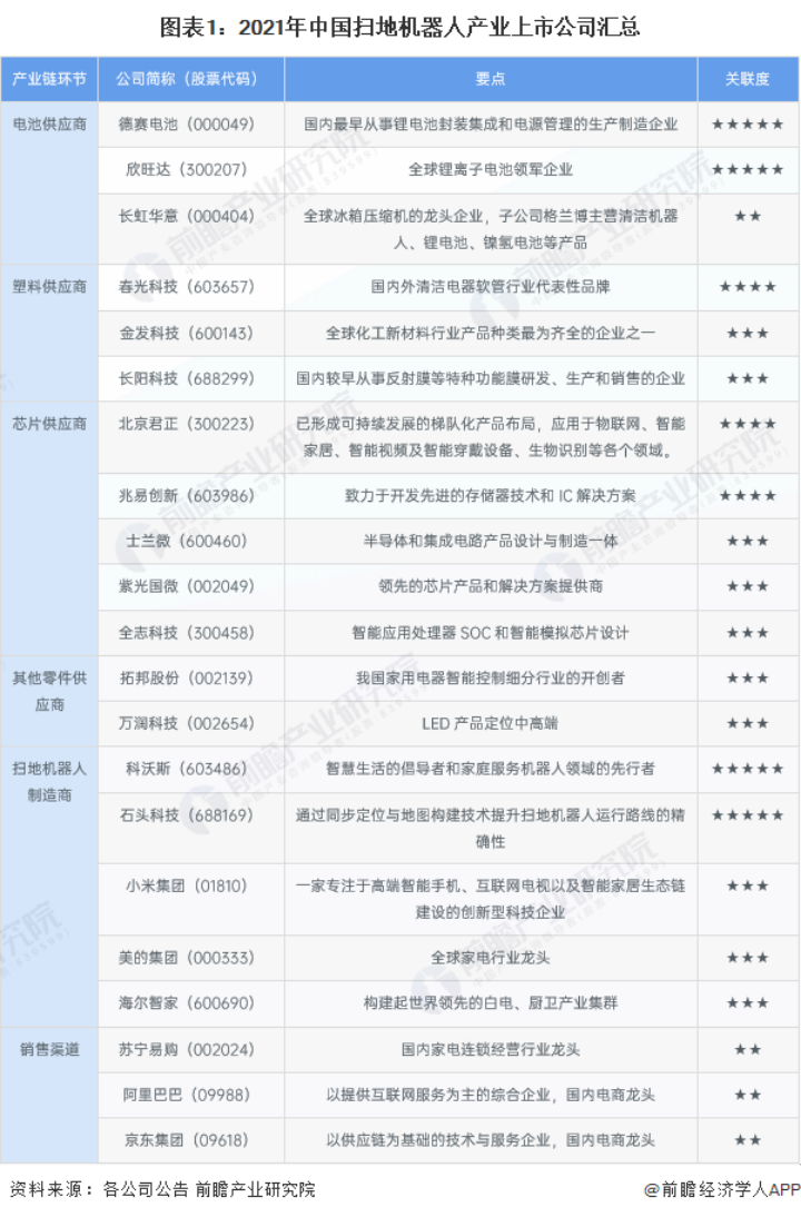 与一般的白电、小家电等行业不同,扫地机上游的零件厂商大多具备很高的行业壁垒(例如在技术、规模层面),并且这些零部件本身还涉及多个产业领域。