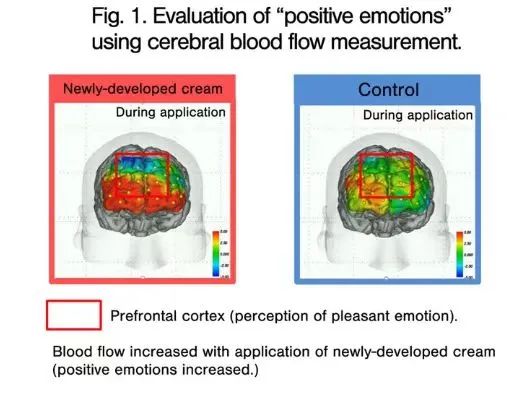 日本知名企业花王集团发布的一项与情绪相关的皮肤护理研究表示,皮肤护理与个人心态有很大关联。该研究做了两个颇具代表性的实验,第一个是研究护肤品对情绪影响的实验,通过脑血量测量发现,当增强护肤霜「丰富度、吸收度、湿润质地」这三种肤感时发现,受体的积极情绪会增加。
