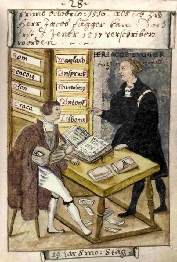15到16世纪,奥格斯堡在经济、艺术方面都异常繁荣,年轻的Matthäus Schwarz当时受雇于声名显赫的超级富豪Jakob Fugger——虽然Matthäus Schwarz痴迷时装,但也不是游手好闲不学无术的纨绔子弟。作为Fugger家族产业的会计,他在1516年联手两位记账员,撰写了一部名为“Dreierlay Buchhaltung (Three-fold Bookkeeping)”的簿记学著作。这部书,后来与号称现代会计之父的Luca Pacioli的“Summa(《算术、几何、比与比例概要》”并称会计学经典之作。