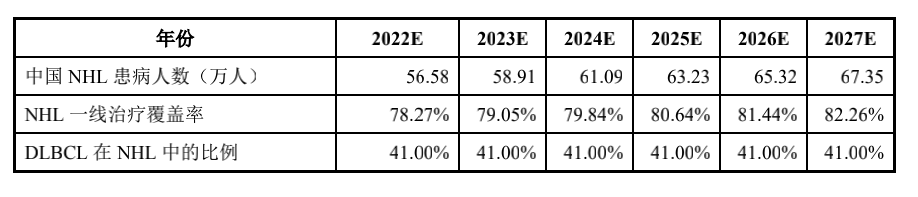 需要注意的是,上文提及的为新增患者数量。因为血液瘤患者生存率较高,所以累积的存量患者规模通常是年新增患者数量的数倍。根据弗若斯特沙利文数据,截至2021年末我国DLBCL存量患者规模数量达到22.2万人,预期 2027年将达到 27.6万人。