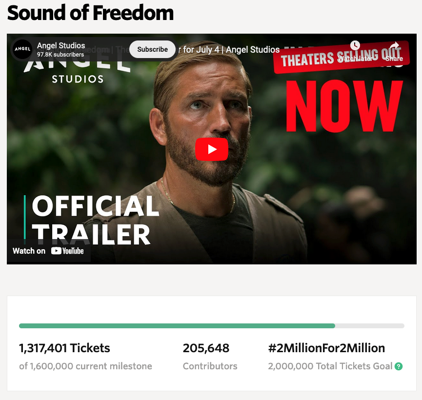 直到今年初,天使影业(Angel Studios)买下《自由之声》,并重新制定其公映的计划。值得一提的是,天使影业的专长在于宗教题材项目,3月份曾推出《他唯一的儿子》,北美院线累计至1208万美元。