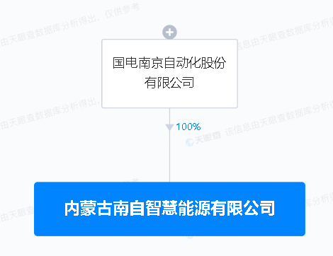 天眼查APP显示,内蒙古南自智慧能源有限公司成立,注册资本1亿元,经营范围包含:太阳能发电技术服务;风电场相关系统研发;储能技术服务;互联网数据服务等。天眼查股权穿透显示,该公司由国电南自100%控股。
