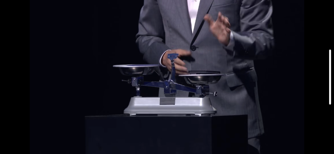 赵明在发布会现场为新机称重,图源荣耀手机微博