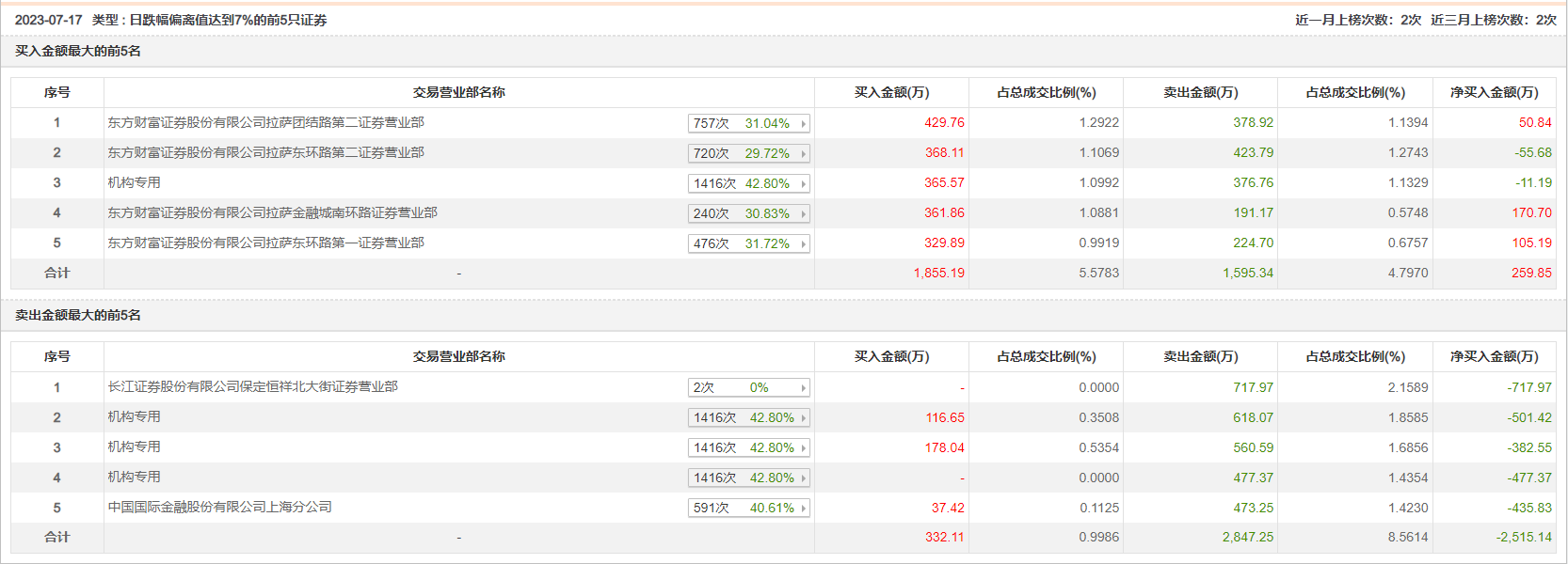 具体来看,机构买入660.26万元,卖出2032.79万元,合计净卖出1372.53万元。此外,长江证券保定恒祥北大街证券营业部、中国国际金融上海分公司分别卖出717.97万元、473.25万元;东方财富证券拉萨团结路第二证券营业部、东方财富证券拉萨东环路第二证券营业部分别买入429.76万元、368.11万元。