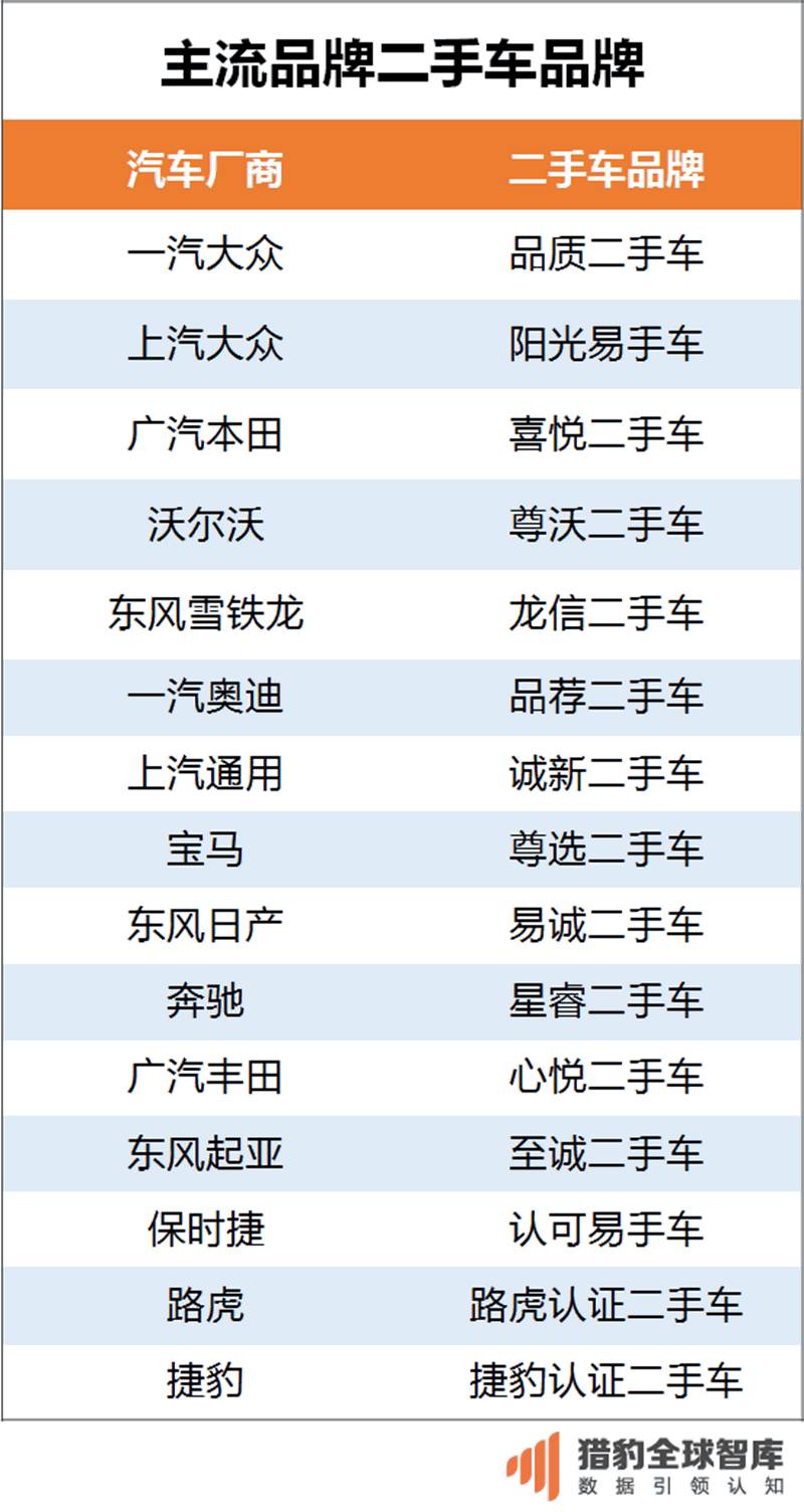 目前,众多厂商已经推出自有品牌二手车服务,其中即包含保有量大的一汽、上汽大众品牌,也不乏保时捷、捷豹路虎等高端品牌,品牌阶梯较宽泛可以照顾到不同购车需求的消费者。