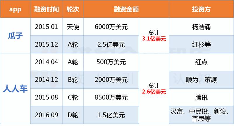 从融资规模来看,两家C2C二手车平台大致相当,瓜子略高。融资初期开展了大量的宣传、明星代言与广告投放,在用户层面累计了丰富的好感与知名度。