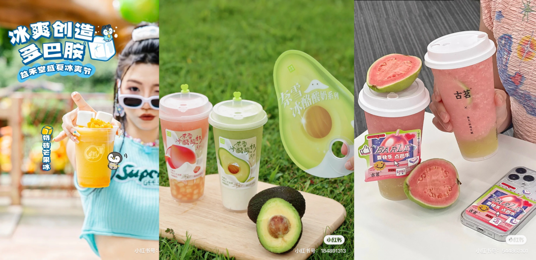 应季水果的酸甜可口,赋予现制茶饮们丰富的味觉体验,可刺激体内多巴胺的生成,其缤纷的色彩也能提供视觉享受,能给人愉悦感。