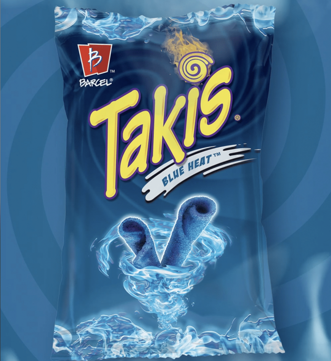 Takis在2019年推出了辣味玉米片新品Blue Heat。产品造型为卷筒形状,加上大胆的蓝色,比传统三角玉米片更加吸引人,非常适合辛辣口味和勇于尝新的人。一开始,这款玉米片是作为限量版发售的,但由于其独特的电蓝色外观和火辣的口味,为消费者带来了难以忘记的强烈感官体验,一经发售便广受好评(相信不少Foodaily创博会的老用户也在2021年的现场品尝过这款玉米片)。