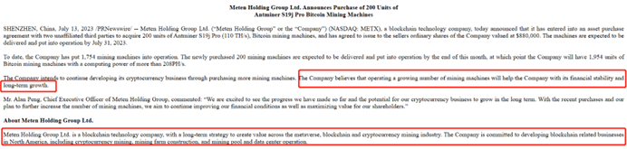 而在公告中,美联甚至直接将自身定位为区块链技术公司,战略是在元宇宙、区块链和加密货币采矿业创造价值。而原本的教育业务已经不见了踪影。