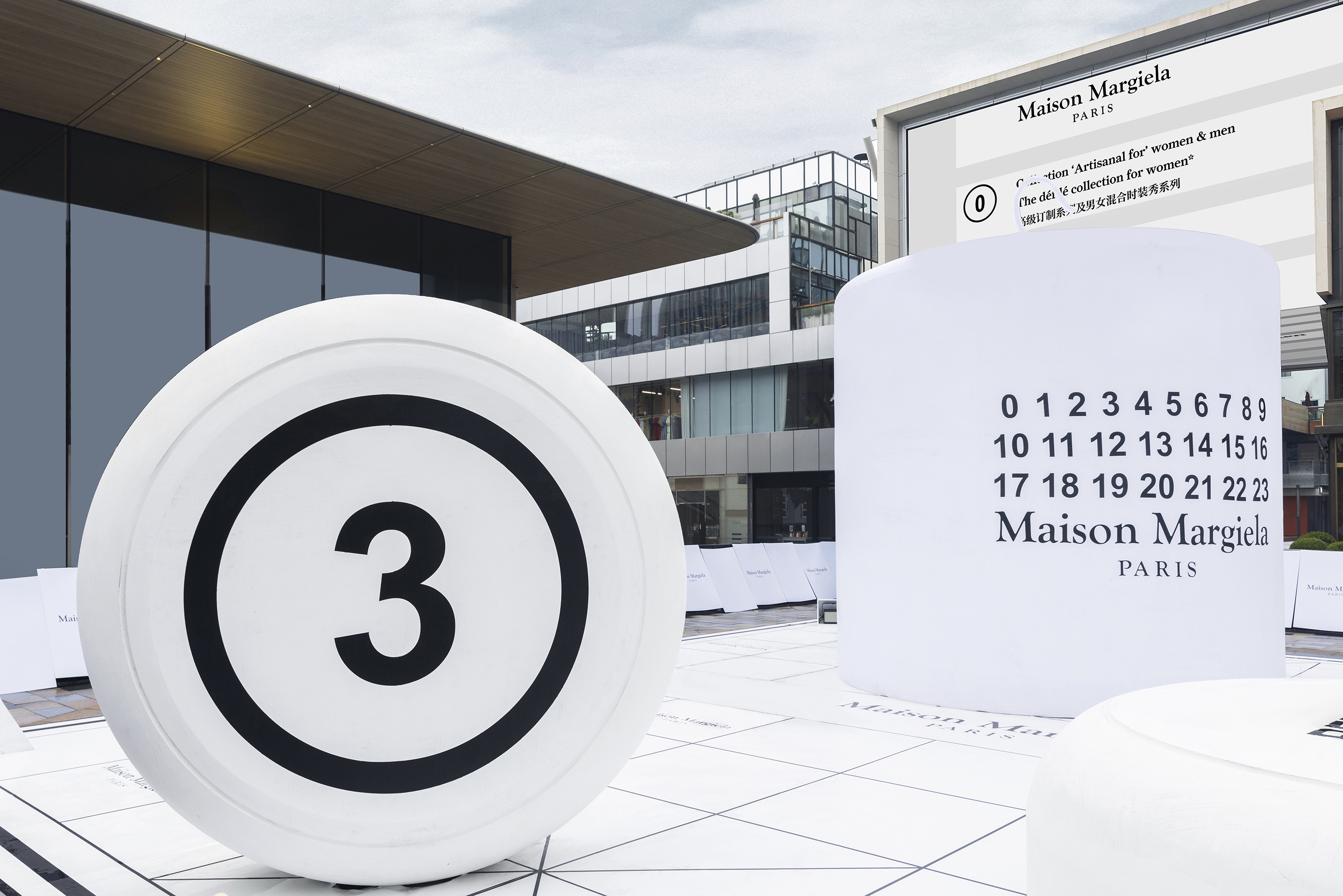 为配合新店开幕,Maison Margiela以北京经典的胡同元素为创意灵感,在店铺外广场打造了一处限时互动体验空间。中国象棋、鸟笼、马扎小凳、冰激凌车等元素,搭配Maison Margiela标志性的白色金属四角缝线及代表品牌配饰支线的数字11标牌,呈现在巨幅Maison Margiela棋盘上。