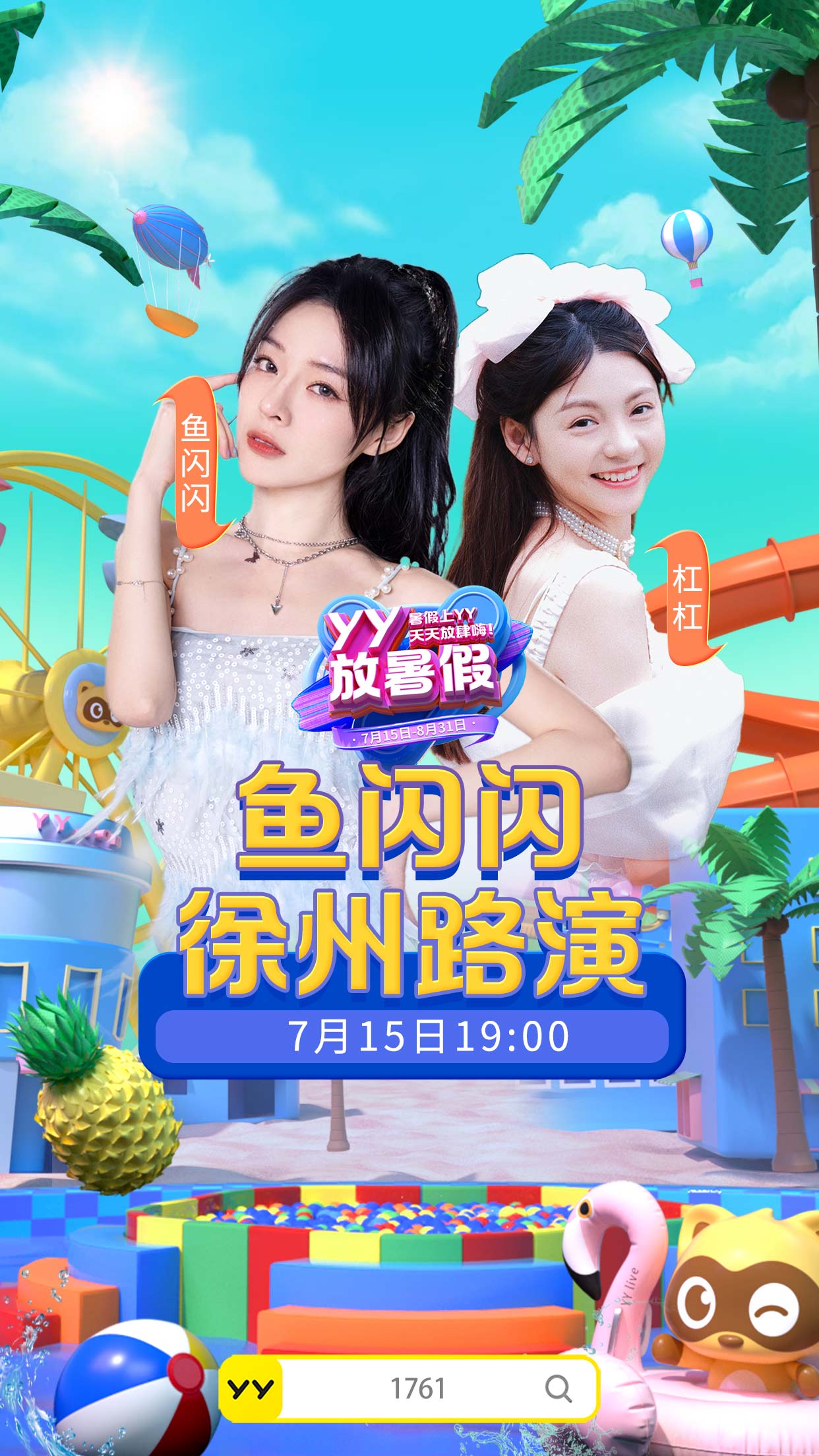 7月15日至8月31日,YY直播全年最大规模精品内容汇演、夏日特别企划“YY放暑假”再度热烈来袭。千万粉丝网红、头部主播多方加盟,将打造一系列类型多样、内容多元、玩法创新的精品节目,为广大网友带来一场好玩又好看、精彩又刺激的夏日狂欢视听盛宴。