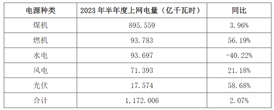 上半年全社会用电量持续增长,公司火电上网电量同比增加;上半年公司水电所在流域来水偏枯,水电上网电量同比减少;受新能源机组利用小时数同比增幅较大及新能源装机容量持续增长的影响,风电、光伏上半年上网电量实现较大幅度增长。