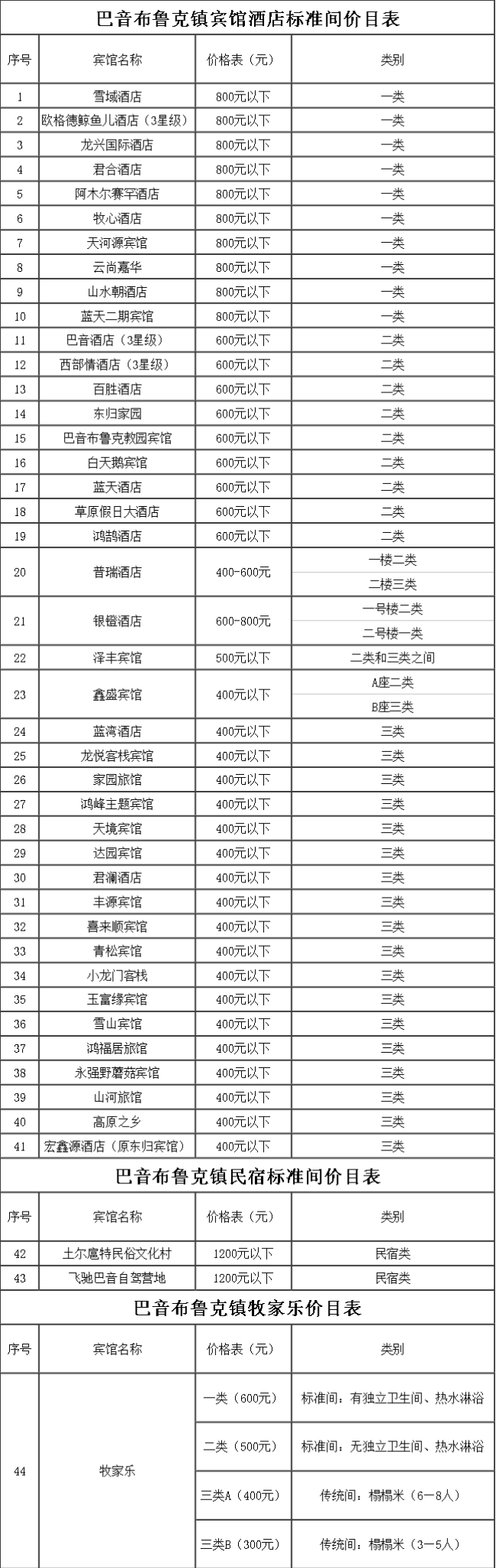 巴音郭楞蒙古自治州和静县巴音布鲁克镇对住宿业市场执行分类最高限价。