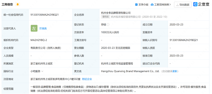 事实上,创业最前线通过企查查发现,全幸公司为自然人独资,且并未有对方所谓的全幸投资方都来自瑞幸,还联合了雀巢咖啡、味全乳业共同投资的相关信息。