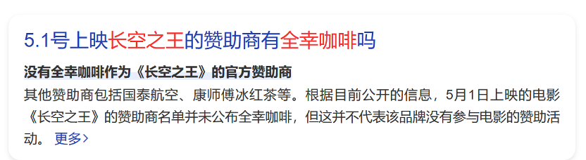 此外,通过搜索《长空之王》相关赞助商,其名单上也并没有全幸咖啡。